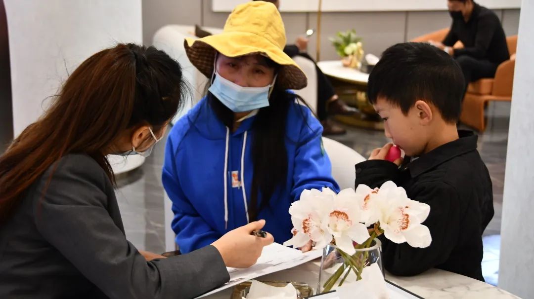 在工作人員熱情細(xì)致的指引下,簽約區(qū)連續(xù)不斷地傳出選購成功的喜訊。工作人員耐心地指導(dǎo)客戶填寫資料和辦理手續(xù),整個過程都在緊張有序地進(jìn)行著。