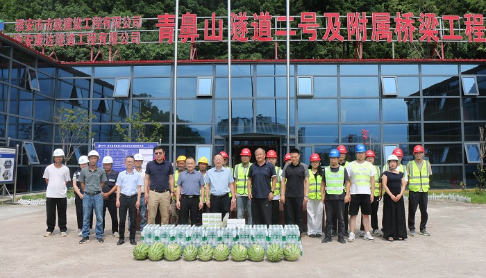 為切實做好高溫天氣下一線職工的勞動保護和防暑降溫工作,連日來,城投公司黨委書記、董事長羅倫全,黨委副書記、董事、總經理范勇分別帶隊,深入青鼻山隧道二號及附屬橋梁工程、雅州印項目施工現場,親切慰問奮戰在酷暑中的一線建設者。公司黨委委員、副總經理茍剛,黨委委員、副總經理瞿橫空陪同慰問。