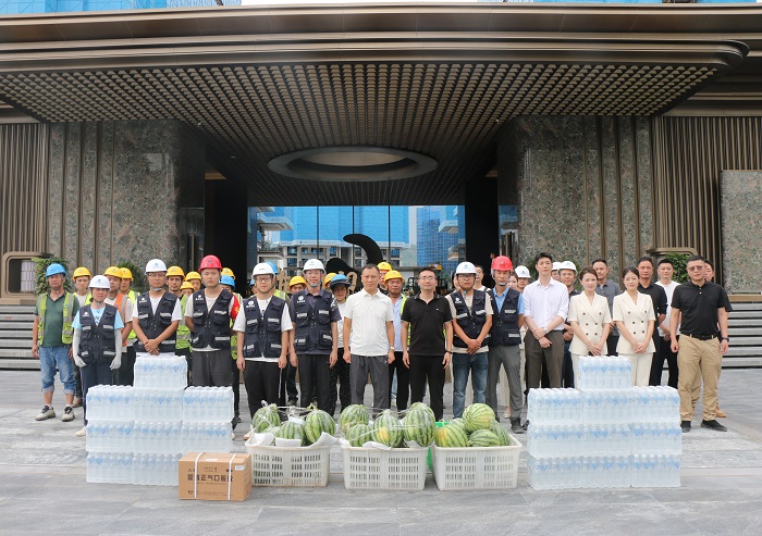 慰問組一行深入施工現場,為奮戰在高溫下的一線建設者送去了礦泉水、藿香正氣液等防暑降溫物資,向他們致以誠摯的問候和衷心的感謝,并詳細詢問了大家的工作生活狀況和防暑措施落實情況,反復叮囑大家要勞逸結合,務必把身體健康和生命安全放在首位,科學合理安排作息時間,嚴格落實各項防暑降溫措施,確保平安度夏。