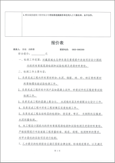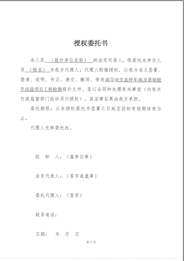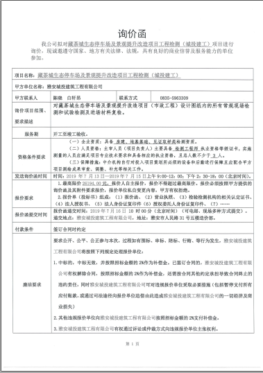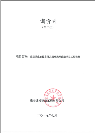 藏茶城生態停車場及景觀提升改造項目工程檢測詢價函