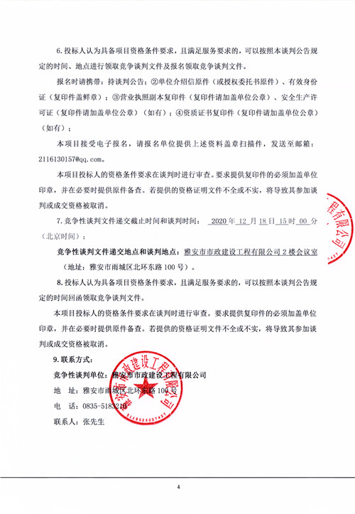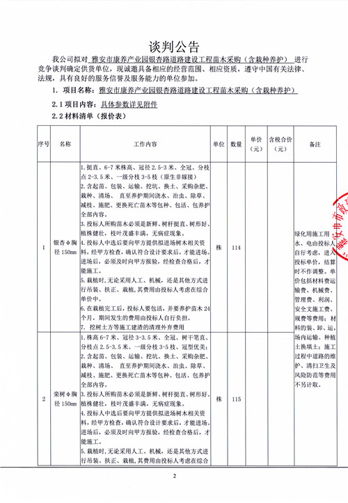 雅安市康養產業園銀杏路道路建設工程苗木采購(含栽種養護)談判公告