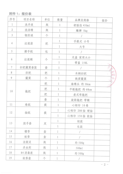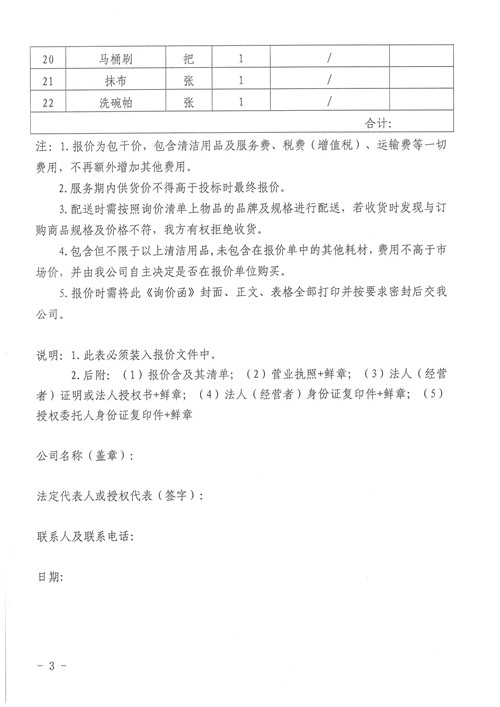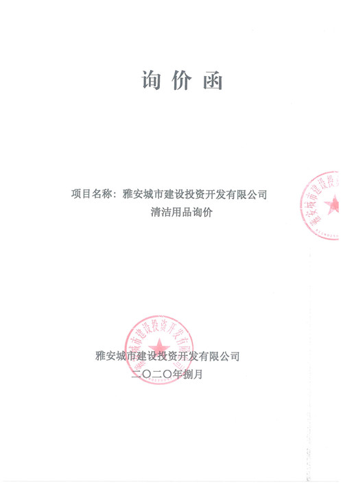雅安城市建設投資開發有限公司清潔用品詢價函
