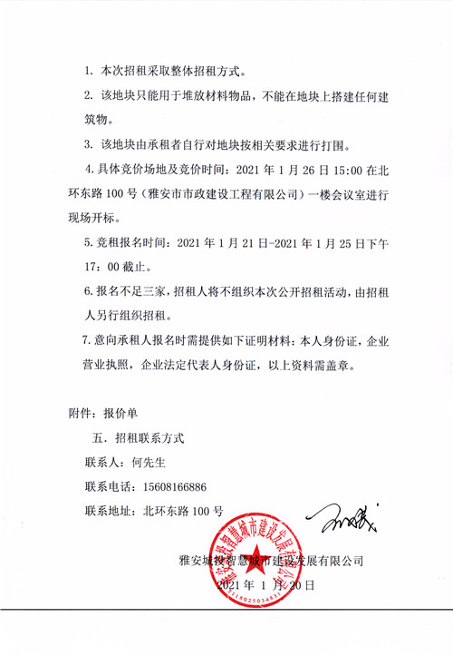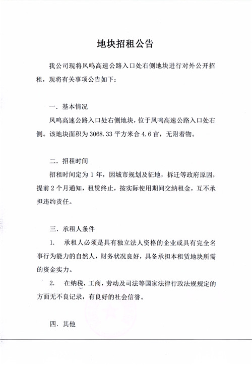 雅安市市政建設工程有限公司鳳鳴高速公路入口處右側地塊招租公告