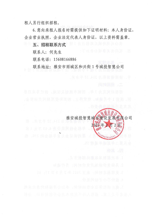 雅安城投智慧城市建設發(fā)展有限公司商鋪招租公告