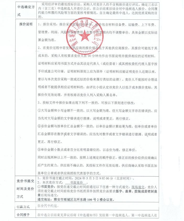 雅州壹號院售樓部及樣板間裝飾工程木工材料采購競價公告