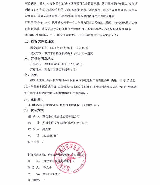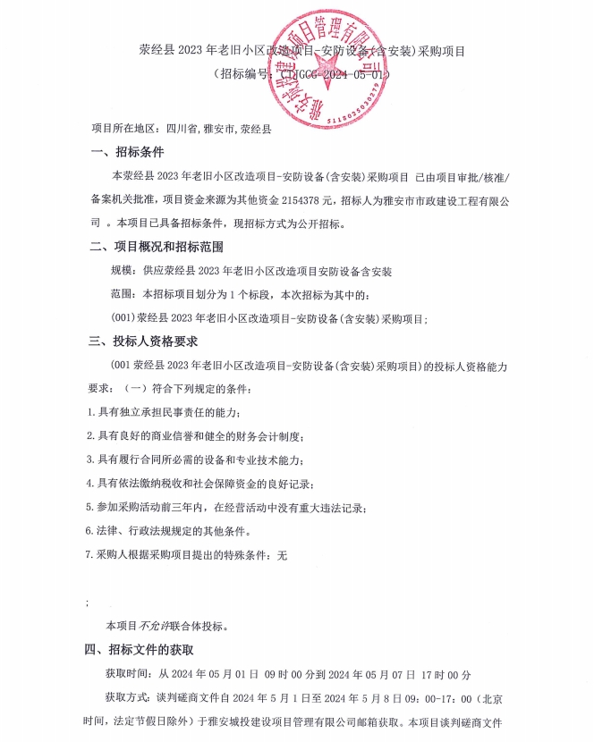 滎經縣2023年老舊小區改造項目安防設備(含安裝)采購項目公告