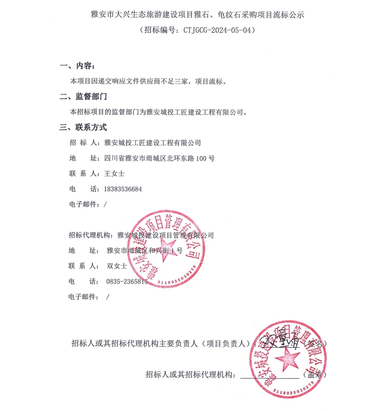 雅安市大興生態旅游建設項目雅石、龜紋石采購項目流標公示