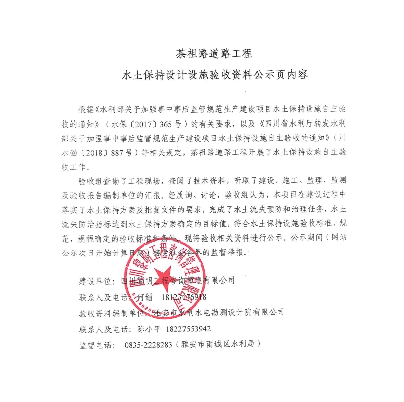 茶祖路道路工程水土保持設計設施驗收資料公示頁內容