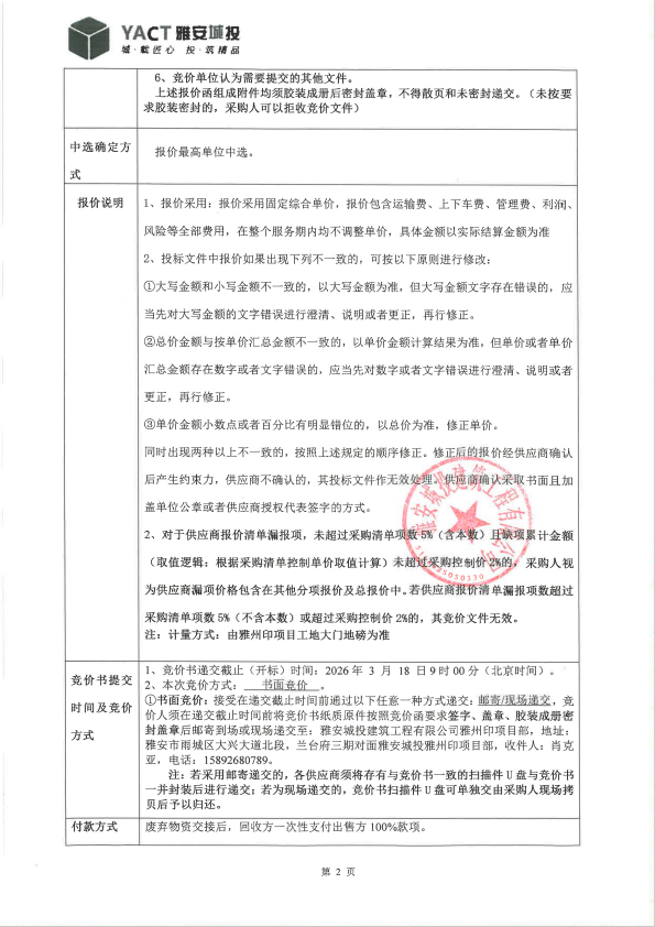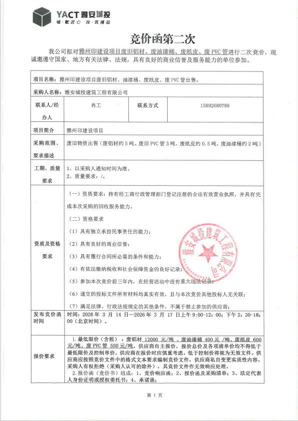 雅州印建設項目廢舊鋁材、油漆桶、廢紙皮、廢PVC管出售(第二次)