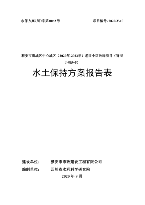 市政公司 雅安市雨城區中心城區(2020年-2022年)老舊小區改造項目(背街小巷(5+5)水土保持方案報告表